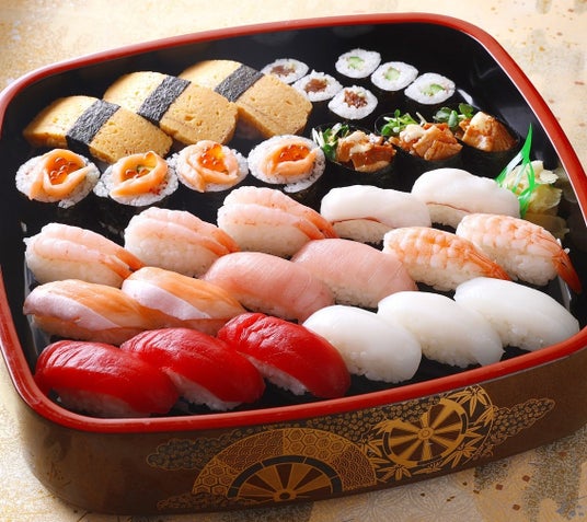 【商品内容】 まぐろ赤身・いか・びんとろ・とろサーモン・海老・玉子・生たこ・甘海老・鉄砲巻き・肉軍艦・カリフォルニア中巻き(サーモン・いくらのせ)・かっぱ巻き