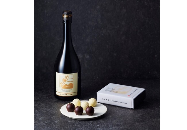「純米大吟醸 とんぼラベル 山田錦」の持つ柔らかく、濃密な甘みと芳醇な旨みを相性の良いホワイトチョコレートのガナッシュに閉じ込めました。チョコレートのほろ苦さを感じる「スイートチョコレート」と、よりまろやかな味わいの「ホワイトチョコレート」でコーティングし、一箱で二つの異なる味わいをお愉しみいただける大人のための日本酒トリュフです。