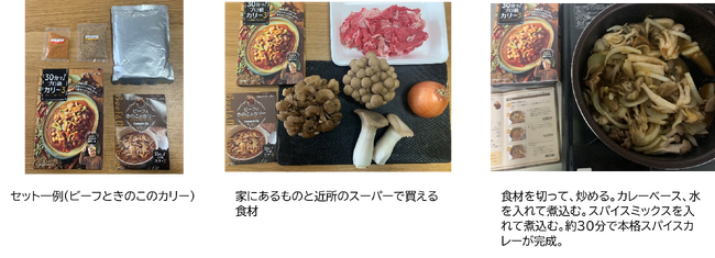 自宅なのにまるでお店で食べるような味が堪能できました。30分でと記載がある通り、材料を切って付属のスパイスを入れて炒めて(この辺りから香りが立ってきて既に美味しそう)あとは煮込むだけなので週末にしか料理をしない30代男性でも超簡単に作れました。