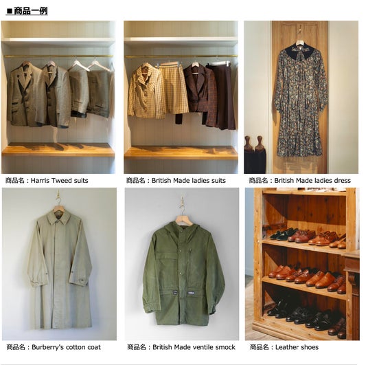 遠く離れた土地の年代を越えたトラディショナルな品々からは、先人の豊かさに対する発想や知恵、丁寧な手仕事の巧みさからは日々のちょっとした彩や恩恵を感じることができる。イギリス人の古いものを長く愛し続ける姿勢に感銘を受け、良い物を長く大事に使い、今はない上質な素材、美しいシルエットの洋服に袖を通すことで、現代の生活では忘れがちな様々な気づきも得られるような品揃えを目指す。