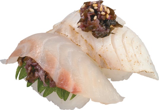 『活〆真鯛の食べ比べ“ゆかりむらさき”仕立て』二貫297円(税込)