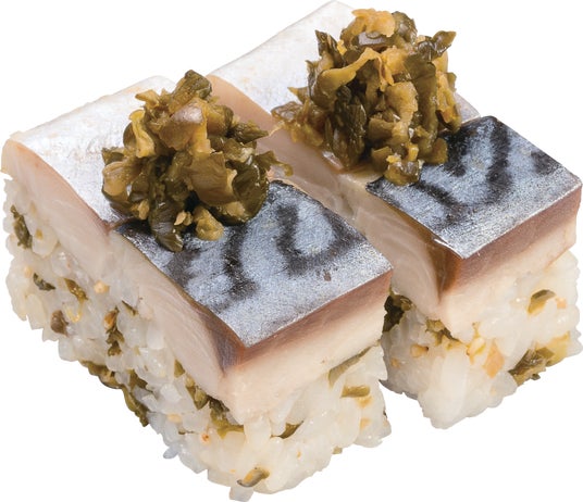 かっぱ寿司の人気ネタである脂ののったとろ〆鯖を使った店舗で仕込む押し寿司に、京都の伝統漬物“山里の香り”を掛け合わせて作り上げた押し寿司です。