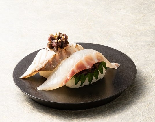 『活〆真鯛の食べ比べ“ゆかりむらさき”仕立て』二貫297円(税込)