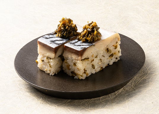 かっぱ寿司の人気ネタである脂ののったとろ〆鯖を使った店舗で仕込む押し寿司に、京都の伝統漬物“山里の香り”を掛け合わせて作り上げた押し寿司です。