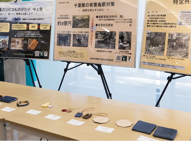 イベント当日は、千葉県の野生鳥獣に関する展示コーナーを会場内に設置し、各種掲示や、ジビエ革製品の展示等も実施予定。
