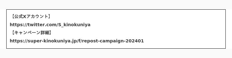 1. X (Twitter) アカウント「株式会社紀ノ國屋 (@S_kinokuniya) 」をフォロー。