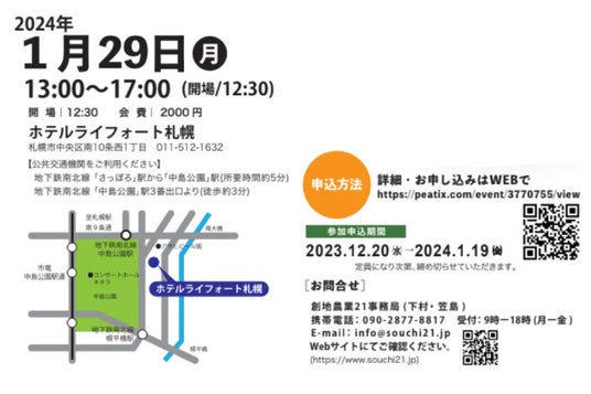 定員になり次第、締め切らせていただきます。創地農業21事務局(下村・笠島)