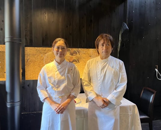 (右から)上村秀字シェフとマネジャーの山本美佳さん