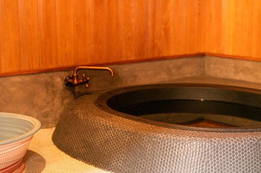 敷地内にある麓寿泉の五右衛門風呂 ※古民家内のシャワーブースのご利用も可能です。