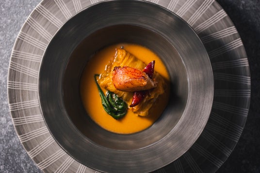 アオハタの白菜ファルシ オマール海老のビスク