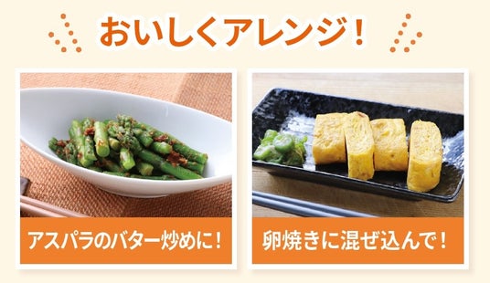 ふりかけの使い方について聞いた自社調査では、「ふりかけをご飯のお供以外に使用する人」が47.7%と、約半数がご飯のお供以外にもふりかけを使用していることが分かりました。ジューシーでソフトな食感は、アツアツのご飯にはもちろん、冷奴やおひたしのトッピング、卵焼きやあえものに混ぜ込んだりなど、いろいろな食材と合わせて調味料としても幅広くお使いいただけます。