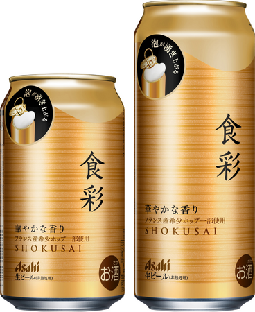 『アサヒ食彩』は、生ジョッキ缶の特性を最大限生かすことで実現した“まるでシャンパンで乾杯するような心躍るひととき”がコンセプトのプレミアムビールです。ふたをあけると湧き上がる“うつくしい”泡が特長で、フランス産希少ホップ「アラミス」を含む5種ホップ使用による華やかな香りを楽しむことができます。