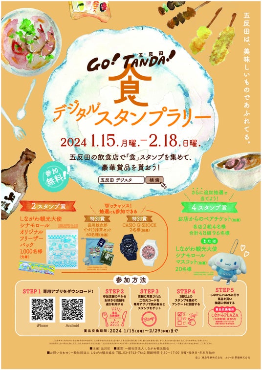 カシオ計算機株式会社は、1月15日から2月18日にて品川区が主催、(一社)しながわ観光協会が運営する五反田エリアの回遊型まち歩きイベント“五反田「食」のデジタルスタンプラリー!”に、当社が提供するスタンプラリーのアプリ「MEGURUWA」が採用されましたのでご案内します。