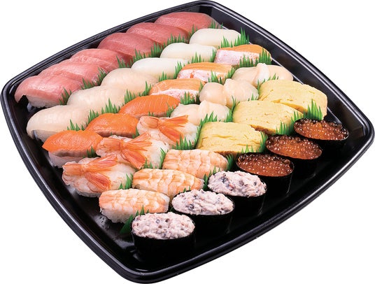 ・セット内容:中とろ、まぐろ、びん長まぐろ、真いか、サーモン、とろサーモン、赤えび、ほたて、えび、玉子、サラダ軍艦、特盛いくら
