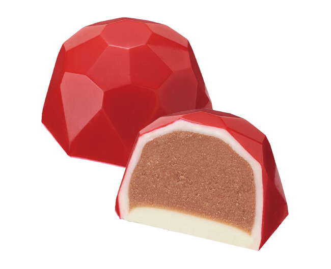 バニラが香るクリーミーなホワイトチョコレート“イボワール35%” に、あまおうのソースとガナッシュを合わせて。