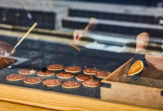 昨年から各種メディアでも取り上げられている、注文を受けてから皮を焼くことでアツアツのどらやきが食べられる贅沢な逸品「焼どら」。伝統を守りながらどらやきの新しい可能性を提案し続ける「門仲どらやき どら山 淺草工房」の人気商品の一つ。