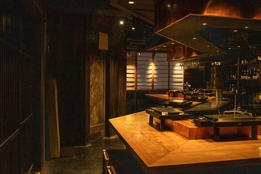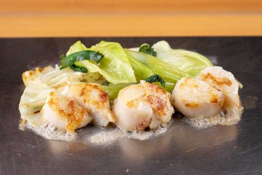 臨場感あふれる鉄板カウンターで「お好み焼きからステーキまで、美味しく焼き上げる」というシンプルかつ基本的な大阪スタイルの伝統を守りながら、築地・豊洲から仕入れる魚介類や牛肉、日本各地の厳選した旬の野菜を、シェフならではの技法で調理し、素材の美味しさを最大限に引き出す「焼き」にこだわります。ジュッという素材が焼ける音、鉄板から立ち上がる炎に香ばしい香り。まさに鉄板カウンターは劇場です。カウンター席お二人にひとつの鉄板を配置してそれぞれの料理に合わせた温度で提供する新スタイルの鉄板焼店。臨場感あふれる店内で新しいカウンター鉄板を実現致しました。また鉄板焼の合間には創作ビストロ料理をお愉しみ頂けます。