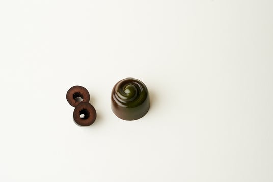 まろやかな甘みと旨味のあるフランス・ブルター ニュ地方のゲランド塩を利かせたカカオの力強さを感じるビターガナッシュ。粗刻みのブラックオリーブを混ぜ込み、食感のアクセントに。ほのかな塩味とショコラの苦みがオリーブの味わいを引き立て、SUBRINAをよりまろやかに感じさせてくれます。渦潮をイメージしたフォルムで。