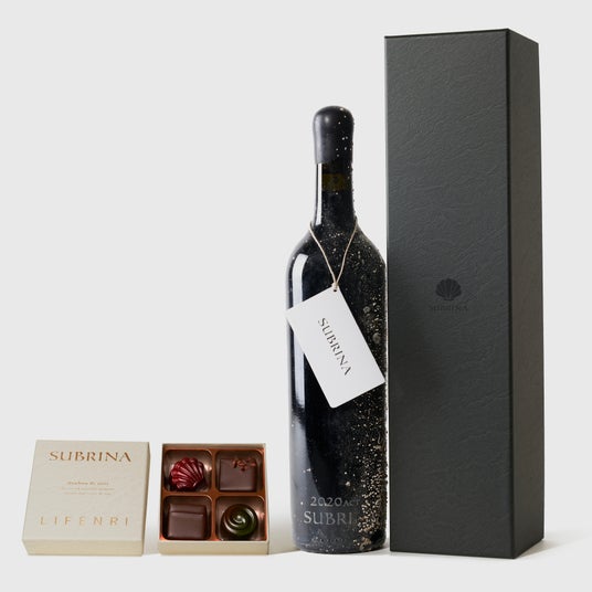 SUBRINAワインとのスペシャルセットでは、ギフトボックス内にボンボンショコラを同梱してお届けします。ギフトオプションとして、想いを伝えるラッピングSUBRINA QUOTES(サブリナクオーツ)のアート包装紙やメッセージカード、手提げ袋もご用意しています。