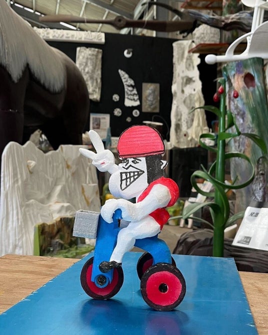 アートスタジオ「駅東創庫」の立体造形・発泡スチロールアーティスト・高嶋幸市氏をお招きし、玉野競輪のマスコット・ガッツたまちゃん三輪車を発泡スチロールで作れる、お子様向けのワークショップを開催します。