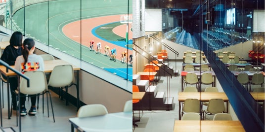 イベント当日は競輪のレースも開催中です!窓側の座席は競輪場(バンク)に向いており、開放的な景色を眺めながらのお食事をお楽しみいただけます。食事や音楽と共に目の前で繰り広げられるレースを間近で観戦することができます。