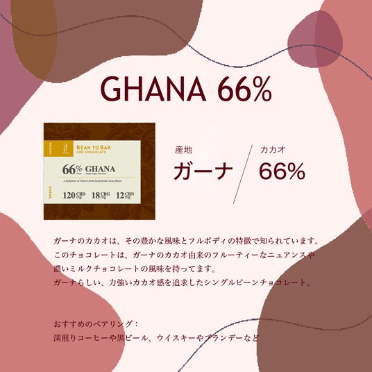 ガーナのカカオは、その豊かな風味とフルボディの特徴で知られています。このチョコレートは、ガーナのカカオ由来のフルーティーなニュアンスや濃いミルクチョコレートの風味を持ってます。ガーナらしい、力強いカカオ感を追求したシングルビーンチョコレート。