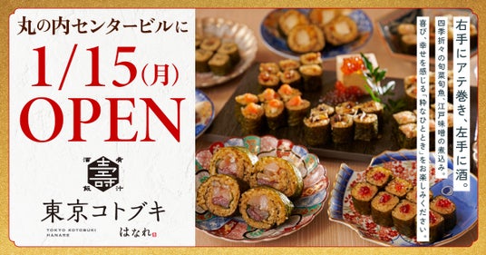 『Dynamic Kitchen&Bar 響』『釣宿酒場マヅメ』『元祖海老出汁 もんじゃのえびせん』などを展開する、株式会社ダイナック(本社:東京都港区、代表取締役社長:綾野喜之)は、『東京コトブキ』の新業態として『東京コトブキ はなれ 丸の内センタービル店』を1月15日(月)にオープンいたします。