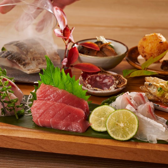 刺身は本マグロと日替わりの新鮮な魚を。アテは季節替わりのおすすめをお愉しみいただけます。