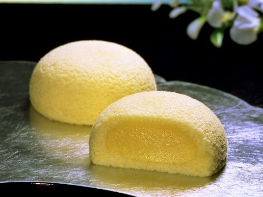 宮城県の銘菓“萩の月”。まろやかで優しい風味のオリジナルカスタードをたっぷり使いふんわりカステラで包みました。