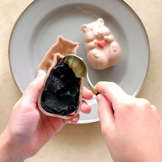 ハムスターモナカの皮にチョコ餡をたっぷり詰めます。自分で詰めるので、チョコ餡の量をお好みで調節いただけます。