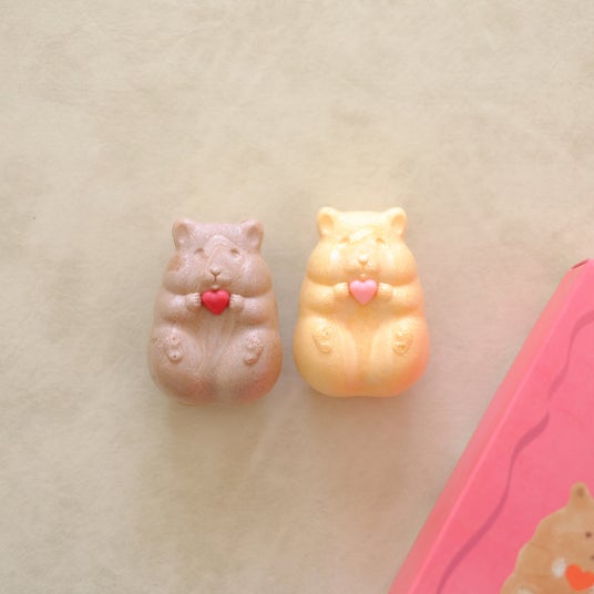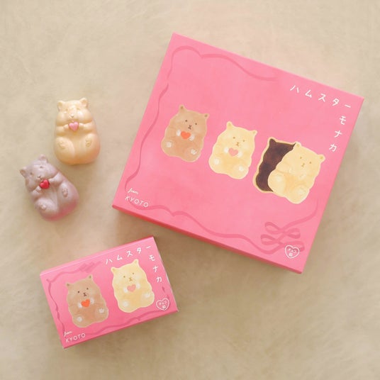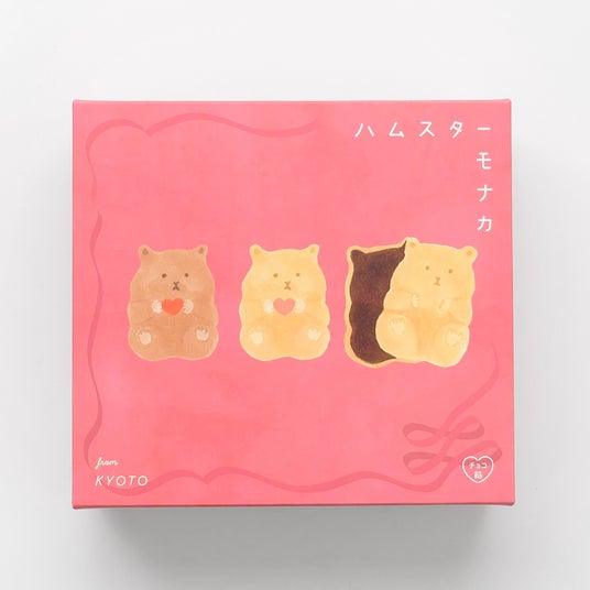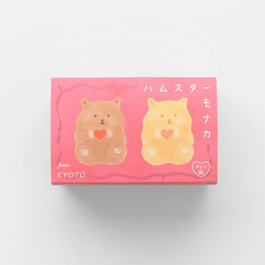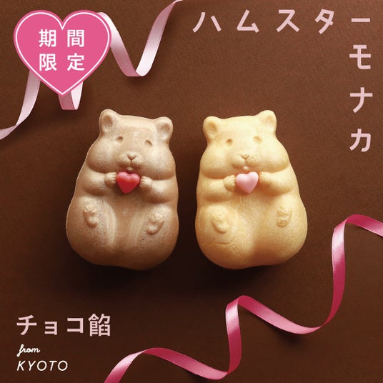 創業130年の京都の老舗菓子屋「青木光悦堂」とユニークな商品企画を専門に行う京都の企画会社「株式会社2時」がコラボしてつくった「ハムスターモナカ」からバレンタインギフトにぴったりなチョコ餡バージョンを新発売いたします。1月16日(火)AM9:00より青木光悦堂オンラインショップ、各店頭、青木光悦堂直売店「幸悦庵」でお買い求めいただけます。詰める楽しみを味わえるだけでなく、甘すぎない上品なチョコレート餡と、パリッと香ばしいモナカはココアとプレーン(こがし)の2種類です。さらに、可愛らしいハート型チョコもセットになっており、みんなで楽しめる6個入りや、ちょっとしたプレゼントにぴったりな2個入りもご用意しています。ハート型チョコをちょこんと持った愛らしい姿にいやされてみませんか?