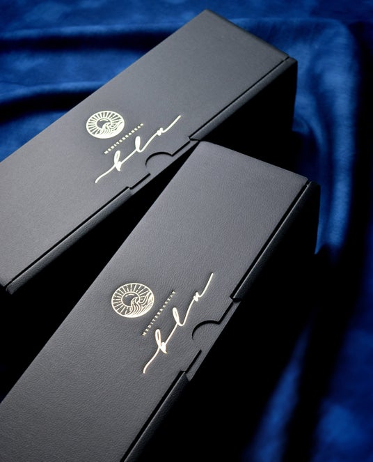 マットブラックの専用化粧箱に金色のロゴをあしらい、品質と風格を携えた専用ボックスにセットされます。