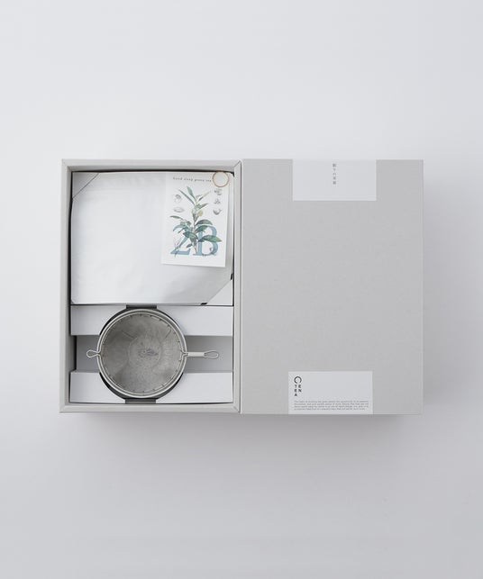 眠りにつくまでの時を、より豊かに、あなたらしい生活のリズムに寄り添うことを思い、EN TEAがお作りした月茶。月茶に適した茶道具として選んだ「上出長右衛門窯」の汲出碗と、菊の模様と亀甲模様に編み上げた美しい柄が特徴の「金網つじ」の茶こしのセットです。