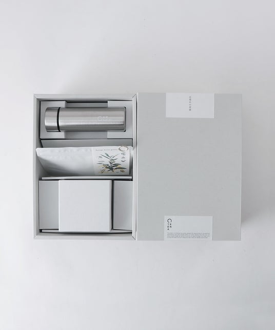 朝の目覚めの時を、より豊かに、あなたらしい生活のリズムに寄り添うことを思い、EN TEAがお作りした日茶。日茶に適した茶道具として選んだ「上出長右衛門窯」の蕎麦猪口と、一杯分の容量(130ml)が入るミニサーモボトルのセット。ボトルの天面には、岡倉 天心著『茶の本』の一節 “Let us dream of evanescence, and linger in the beautiful foolishness of things.(はかないことを夢に見て、美しい取りとめのないことをあれやこれやと考えようではないか。)” が入っています。