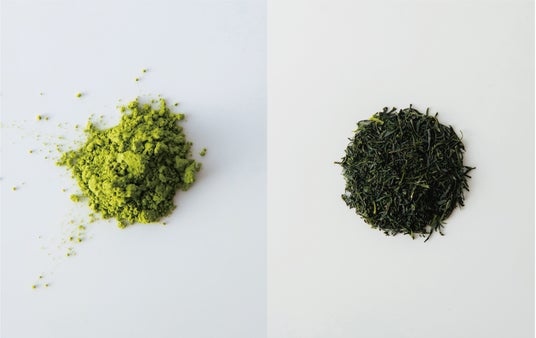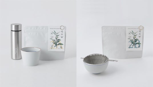 茶は日々の営みを豊かに、人の暮らしに寄り添えるものであってほしい。そんな願いを込めて作った同セットでは、ティーバッグではなく、湯に溶かして飲む微粉末の緑茶「日茶」と、低温抽出することでカフェインを控えたリーフの緑茶「月茶」の二種類を展開。