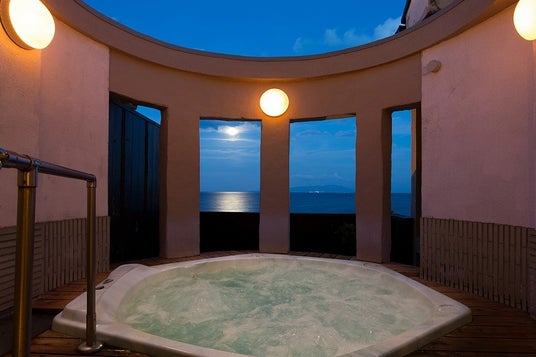 どこか懐かしい静かな港町、北川温泉の海沿いに佇み、海と伊豆大島のパノラマが広がる和の湯宿。自家源泉かけ流しの湯、伊豆山海の幸を味わう揚げたて天婦羅が食べ放題の会席料理、海に昇る朝日と満月の夜には「ムーンロード」を望む客室で、ゆったりとお寛ぎください。湯上りビールやところてんサービス、温泉卓球、記念日のお祝い、連泊には吉祥弁当のランチ特典など、無料のおもてなしも好評です。伊豆熱川駅から定時無料送迎で10分。