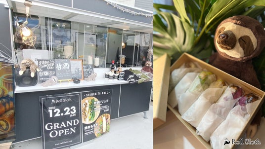 2023年12月23日にオープンした「Roll Sloth?」における売れ筋商品である、ライスペーパーを使用したSHIMOKITA ROLL。 牡蠣トリュフ・焼肉もち米・豚しゃぶサラダの食事系や紫いもバター・チョコバナナのデザート系、期間限定メニューも続々と登場!個性的なワンハンドフードとなっています。 また「なまけ汁(おいしい)」をはじめ、ホットドリンクやアルコールの販売もあり、連日多くの方にご来店いただいております。