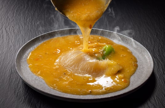 受賞記念 特撰ふかひれディナーコース「乾燥ふかひれの上海蟹味噌あんかけ 半月仕立て」(写真は二人前)