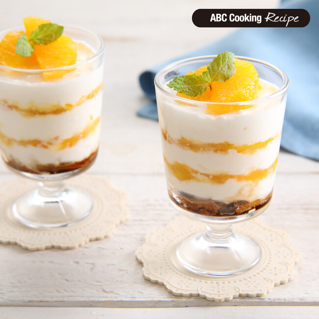 生乳とクリームで作ったクリームチーズに、コーヒーシロップを染み込ませた市販のビスケット・オレンジマーマレードを層にして仕上げる簡単なティラミスです。生乳とクリームで作った濃厚な味わいのクリームチーズを使うことで、生クリームを使わずに作れる簡単レシピです。
