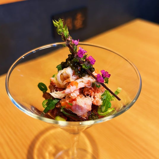 和牛の炙りユッケとズワイガニ、キャビアのカクテル