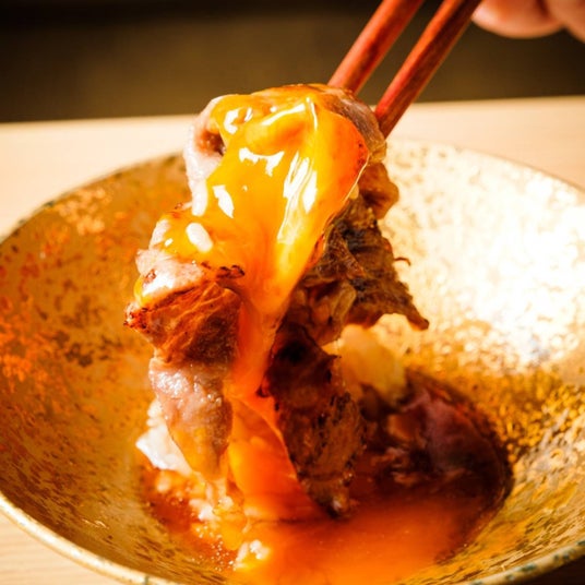 ・厳選黒毛和牛ミスジの焼きしゃぶ 昆布ポン酢と卵黄
