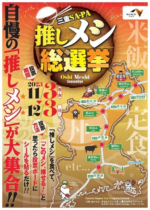 中日本エクシス株式会社 三重支店(三重県四日市市鵜の森、支店長・山本(やまもと)武司(たけし))は2023年度の第2弾「推し」企画、「三重SA・PA 推しメシ総選挙」の「No.1メシ」が決定しましたので結果を発表します。