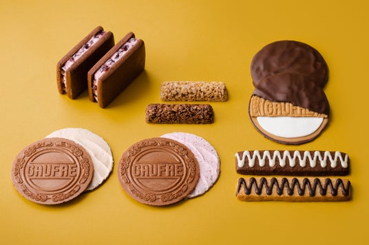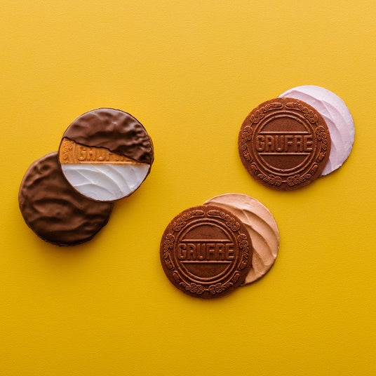 商品特長:ショコラ味に焼き上げたウエハースに、ヘーゼルナッツクリームやラズベリークリームをサンドして仕上げました。ちょっと大人で洗練された、プティゴーフルです。