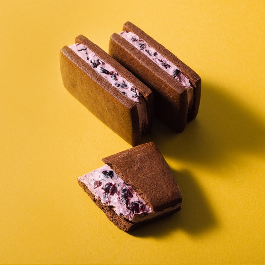 商品特長:サクッと香ばしく焼き上げたチョコクッキーに、クランベリー入りクリームをサンドしました。チョコレートのほろ苦さとクランベリーの甘酸っぱさが相性抜群です。