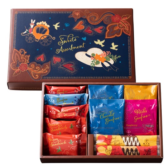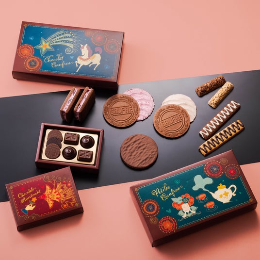 毎年人気の「ショコラゴーフル」や「プティゴーフル ショコラライン」など、この時期だけに味わえる限定商品9アイテムが、上野風月堂のために描き下ろされたイラストをあしらったパケージに包まれて登場します。老舗ならではの美味しさと、幻想的で魅力的なパッケージが、バレンタインの贈り物としてぴったりです。