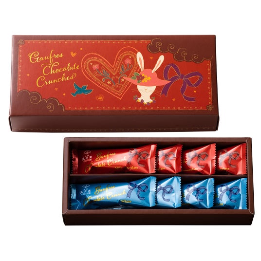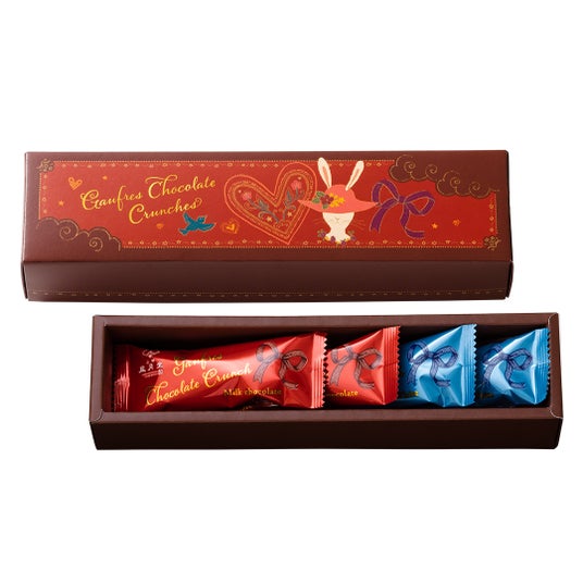 商品特長:ゴーフルウエハースを使用してチョコレートと混ぜ合わせたサクサク食感のバータイプのクランチチョコレートです。ミルクチョコレートとホワイトチョコレートの2つのお味をお楽しみいただけます。