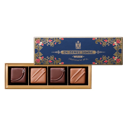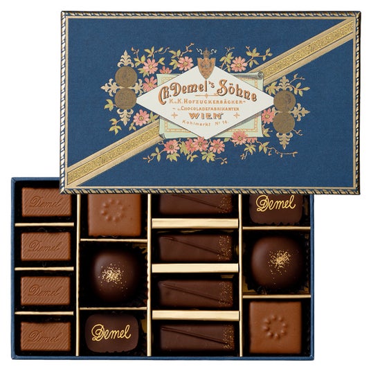華麗なパッケージに包まれた限定アソートメント。デメルのチョコレートの美味しさを様々に楽しめる逸品です。