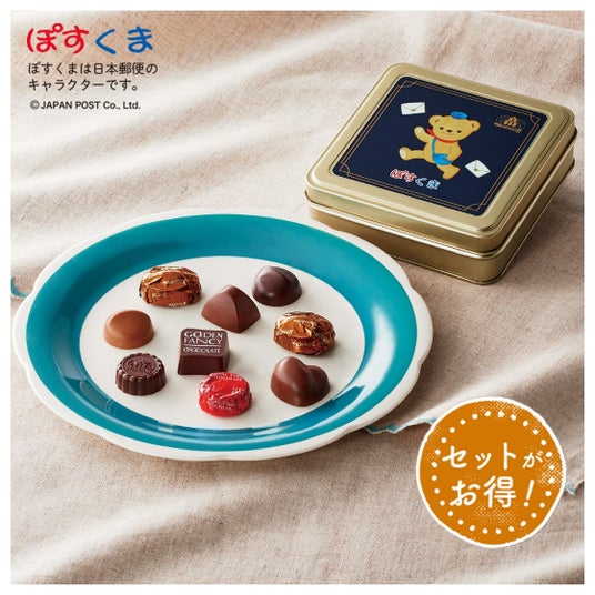 「ぽすくまのファンシーチョコレート」は、ゴールドの缶に「ぽすくま」のかわいいイラストを施した新商品です。1缶のみの購入よりもお得になる、2缶セットと3缶セットをご用意しています。