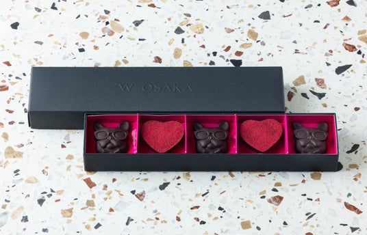 また、昨年完売した無添加のフレンチブルドッグチョコレート(バレンタインVer.)を今年もご用意。不要な添加物や動物性食品を一切使用しないチョコレートは、アレルギーをお持ちの方や健康志向の方へのギフトに最適です。その他、ル・ショコラ・アラン・デュカスがW大阪のためだけに開発した2種のフレーバー入りのショコラBOXや、定番のオリジナルクッキー缶、MIXupのロゴが入ったマカロンなどもご用意しております。
