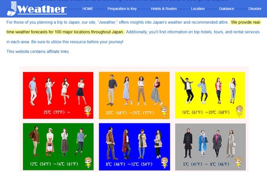 ・日本各地の天候とおすすめの服装を紹介するサイト「Jweather」